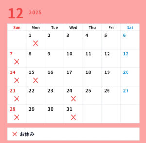 12月の休業日予定です。